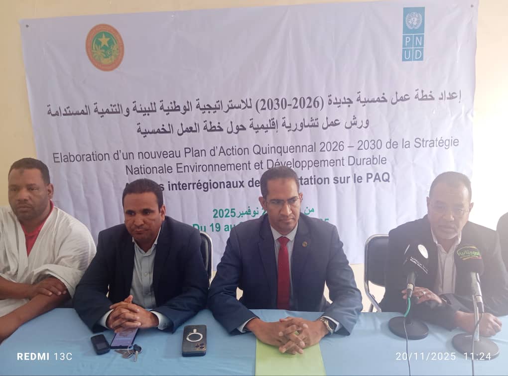 من جهته، أوضح المندوب الجهوي لوزارة البيئة والتنمية المستدامة بولاية لبراكنة السيد لغمان البكاي أن الورشة تشكل فرصة لتبادل الأفكار وبحث التحديات البيئية ورسم آفاق جديدة نحو بيئة مستدامة تنسجم مع تطلعات البلاد.