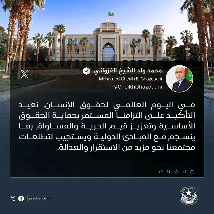 جدد فخامة رئيس الجمهورية السيد محمد ولد الشيخ الغزواني، التزامه بحماية الحقوق الأساسية وتعزيز قيم الحرية والمساواة.
