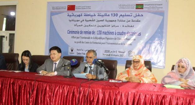 تسلّمت وزارة العمل الاجتماعي والطفولة والأسرة، اليوم الجمعة في نواكشوط، 130 ماكينة خياطة كهربائية مقدمة من جمهورية الصين الشعبية، خلال حفل أشرف عليه الأمين العام للوزارة، السيد حمودي شيخنا عالي، رفقة السفير الصيني المعتمد لدى موريتانيا سعادة السيد تانغ تشونغ دونغ.