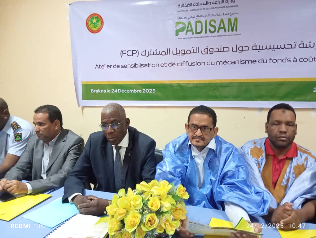 أشرف والي لبراكنة، السيد محمد ولد السالك، اليوم الأربعاء بمدينة ألاك، على افتتاح ورشة عمل تحسيسية حول آلية التمويل التشاركي لمشروع دعم التنمية والابتكار في القطاع الزراعي (PADISAM)، التابع لوزارة الزراعة والسيادة الغذائية، والممول من طرف البنك الدولي.