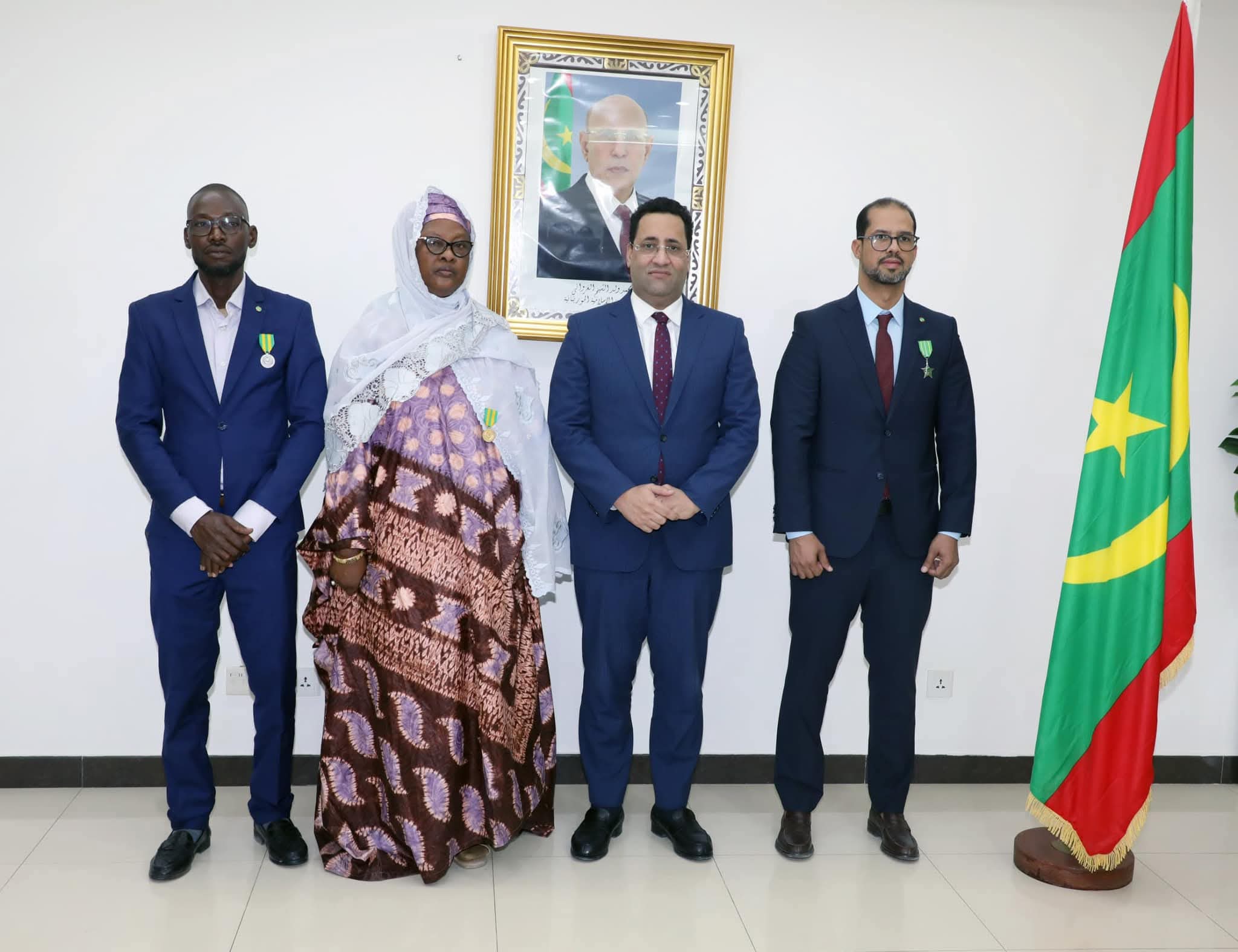 وشملت التوشيحات بوسام فارس في نظام الاستحقاق الوطني، السيد محمد عبد الله سيدي محمد اعلي الطالب، مدير الودائع والأمانات بصندوق الإيداع والتنمية، وبميدالية الشرف من الدرجة الأولى، السيدة اندي آمادو ماي، موظفة بإدارة المحاسبة بالمدرسة الوطنية للإدارة والصحافة والقضاء، وبميدالية الشرف من الدرجة الثانية السيد حمادي أحمد عمر، عامل بصندوق الإيداع والتنمية.