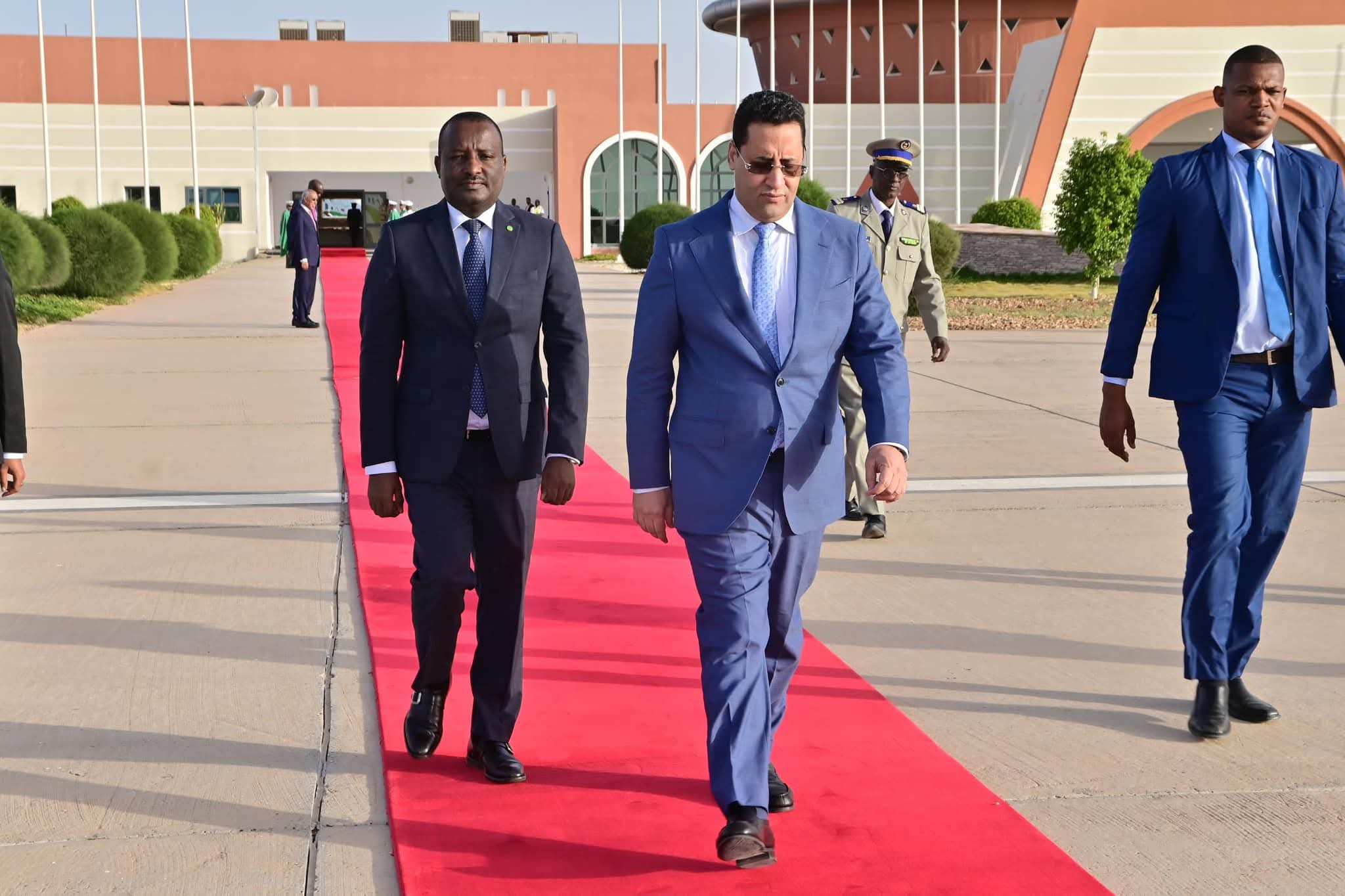 وودع معالي الوزير الأول بمطار نواكشوط الدولي – أم التونسي من طرف معالي وزير العدل السيد محمد ولد اسويدات، ومعالي الوزير المكلف بالأمانة العامة للحكومة السيد مختار الحسينو لام، ومعالي وزير الدفاع وشؤون المتقاعدين وأولاد الشهداء السيد حننه ولد سيدي، إضافة إلى المدير المساعد لديوان الوزير الأول السيد فؤاد مختار النش، ووالي نواكشوط الغربية السيد حمود ولد امحمد، ونائبة رئيسة جهة نواكشوط السيدة هاوى سيدي بي.