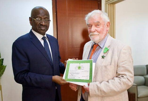 وشح معالي وزير الشؤون الخارجية والتعاون الإفريقي والموريتانيين في الخارج، السيد محمد سالم ولد مرزوك، باسم فخامة رئيس الجمهورية، السيد محمد ولد الشيخ الغزواني، اليوم الخميس بمقر الوزارة في نواكشوط، الدكتور روبير فيرنيه، الأستاذ المبرّز في التاريخ والباحث في علم الآثار حول موريتانيا، بوسام فارس من نظام الاستحقاق الوطني.