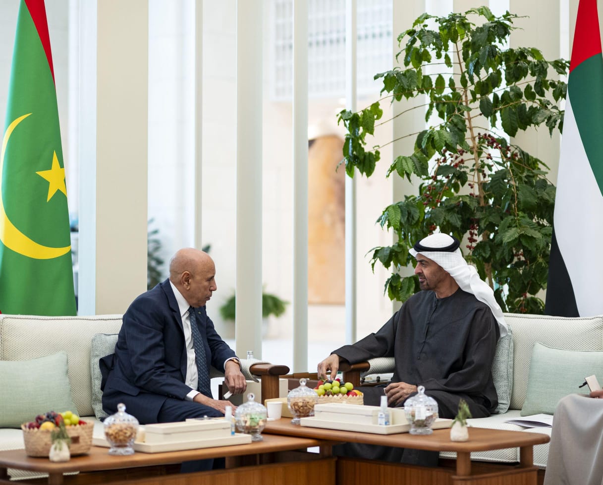 أجرى فخامة رئيس الجمهورية، السيد محمد ولد الشيخ الغزواني، اليوم الأحد في أبوظبي، مباحثات مع صاحب السمو الشيخ محمد بن زايد آل نهيان، رئيس دولة الإمارات العربية المتحدة، تناولت علاقات التعاون بين البلدين، وسبل تعزيزها، خاصة في المجالات التنموية والاقتصادية وقطاع الطاقة المتجددة.